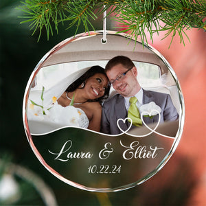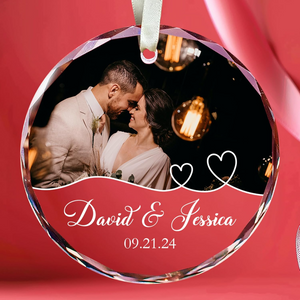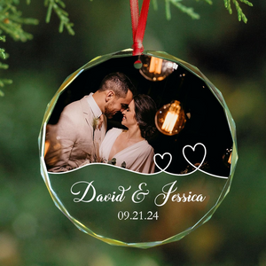 Personalized Photo Christmas Glass Ornament, Gift For Couple, Wedding Gifts
