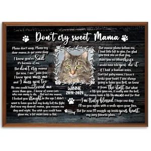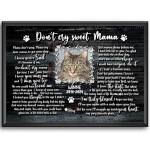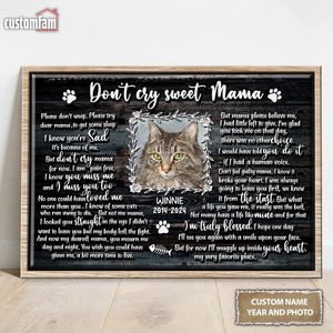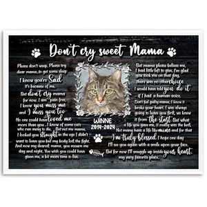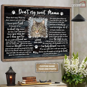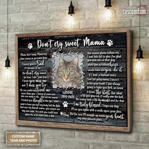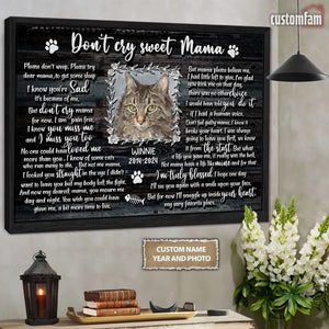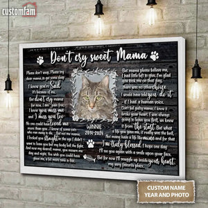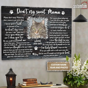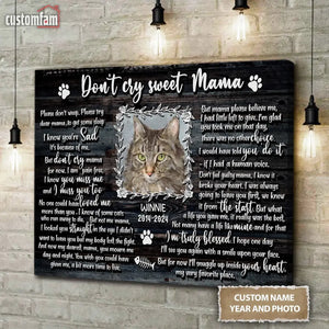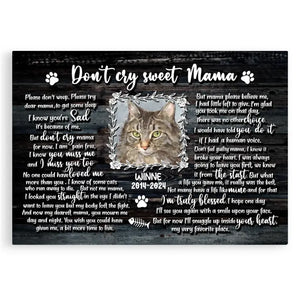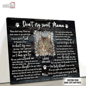 Personalized Photo Don’t Cry Sweet Mama, Custom Canvas Print, Remembrance Gift, Personalized Gift, Cat Gift, Memorial Gift, Pet Loss Gift
