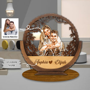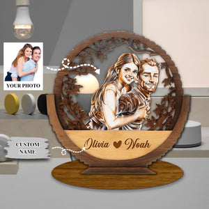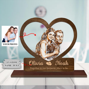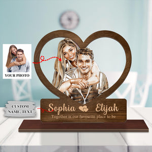 Personalized Photo Love Wooden Frame, Romantic Artwork, Anniversary Gift For Couple