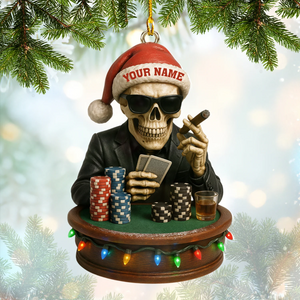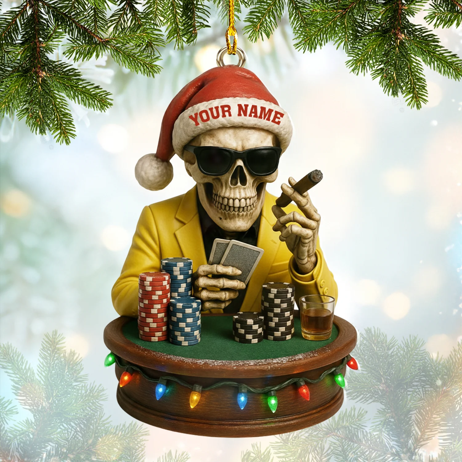 Personalized Poker Santa Ornament – Custom Name Christmas Ornament Gambling Christmas Gifts