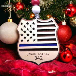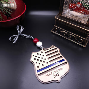 Personalized Police Ornament, Wooden Christmas Ornament, Gift for Cop
