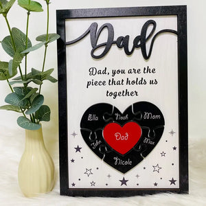 Personalized Puzzle Father Sign Father's Day, Gifts From Kids, 2 Layered Wooden Sign, Gifts for Dad