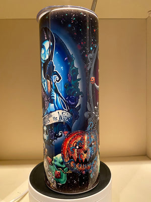 Personalized Sally And Jack Skellington Old Frame 20oz Stainless Steel Tumbler, Halloween Gift