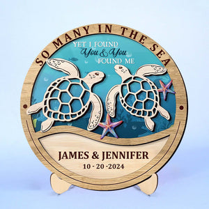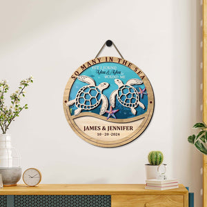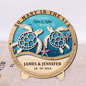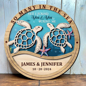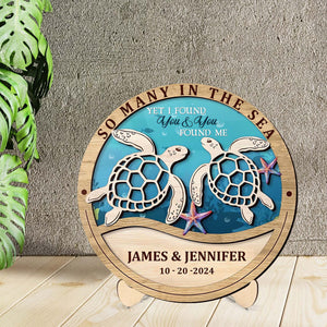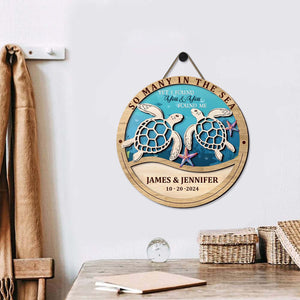 Personalized Sea Turtles 2 Layered Wood Sign, Couple Wood Sign, Valentine's Day Gift
