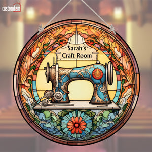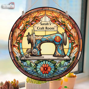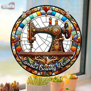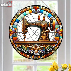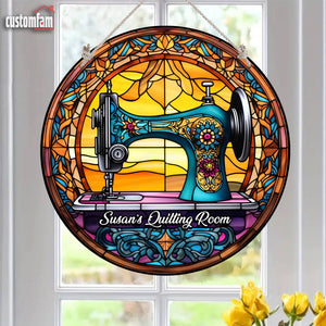 Personalized Sewing Quilting Room Acrylic Hanging Suncatcher, Craft Room Decor