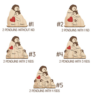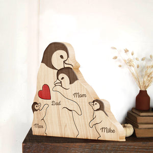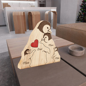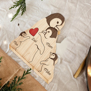 Personalized Shaped Wooden Puzzle, Penguin Family Ornament, Family Gifts
