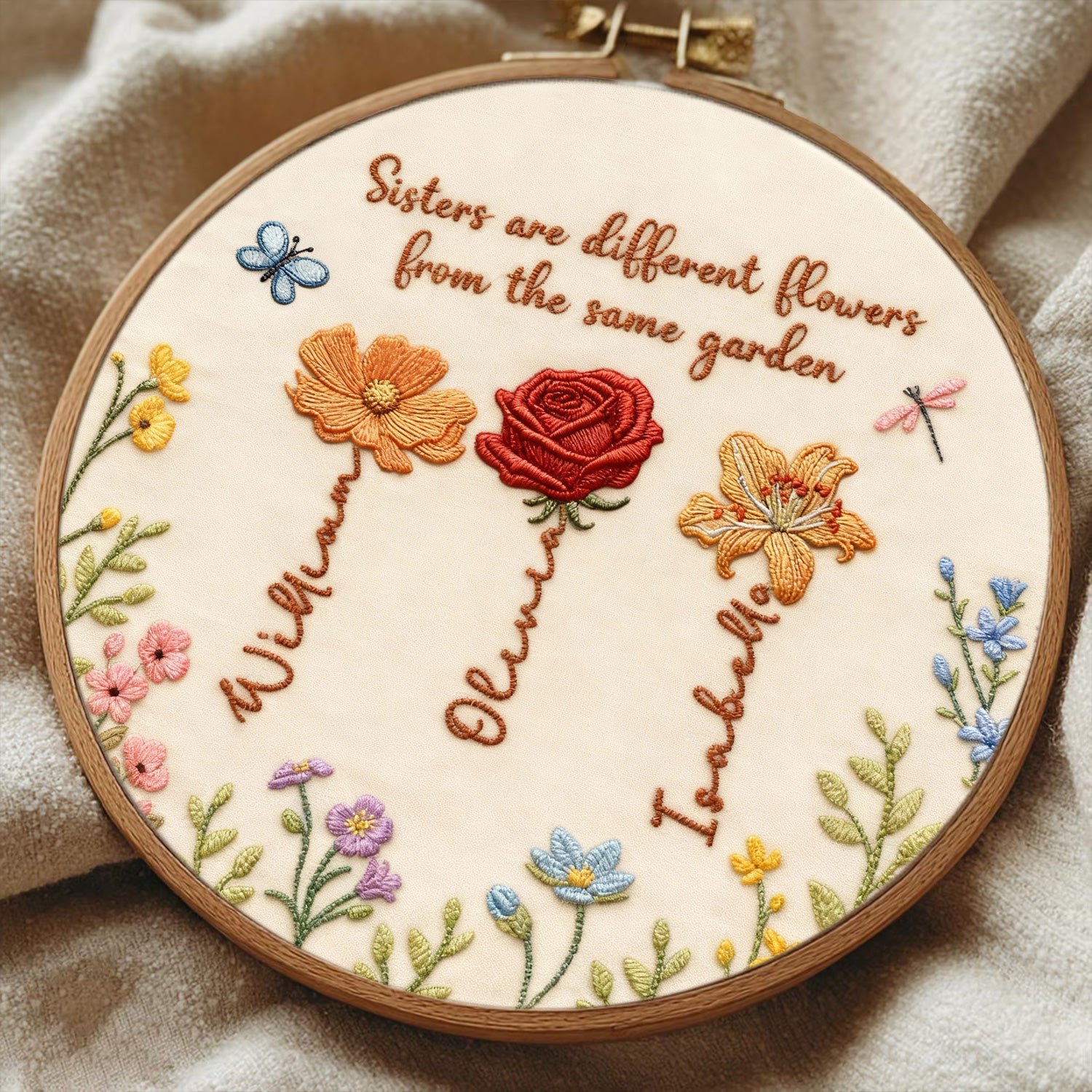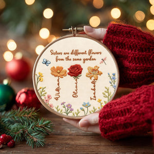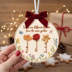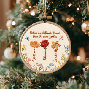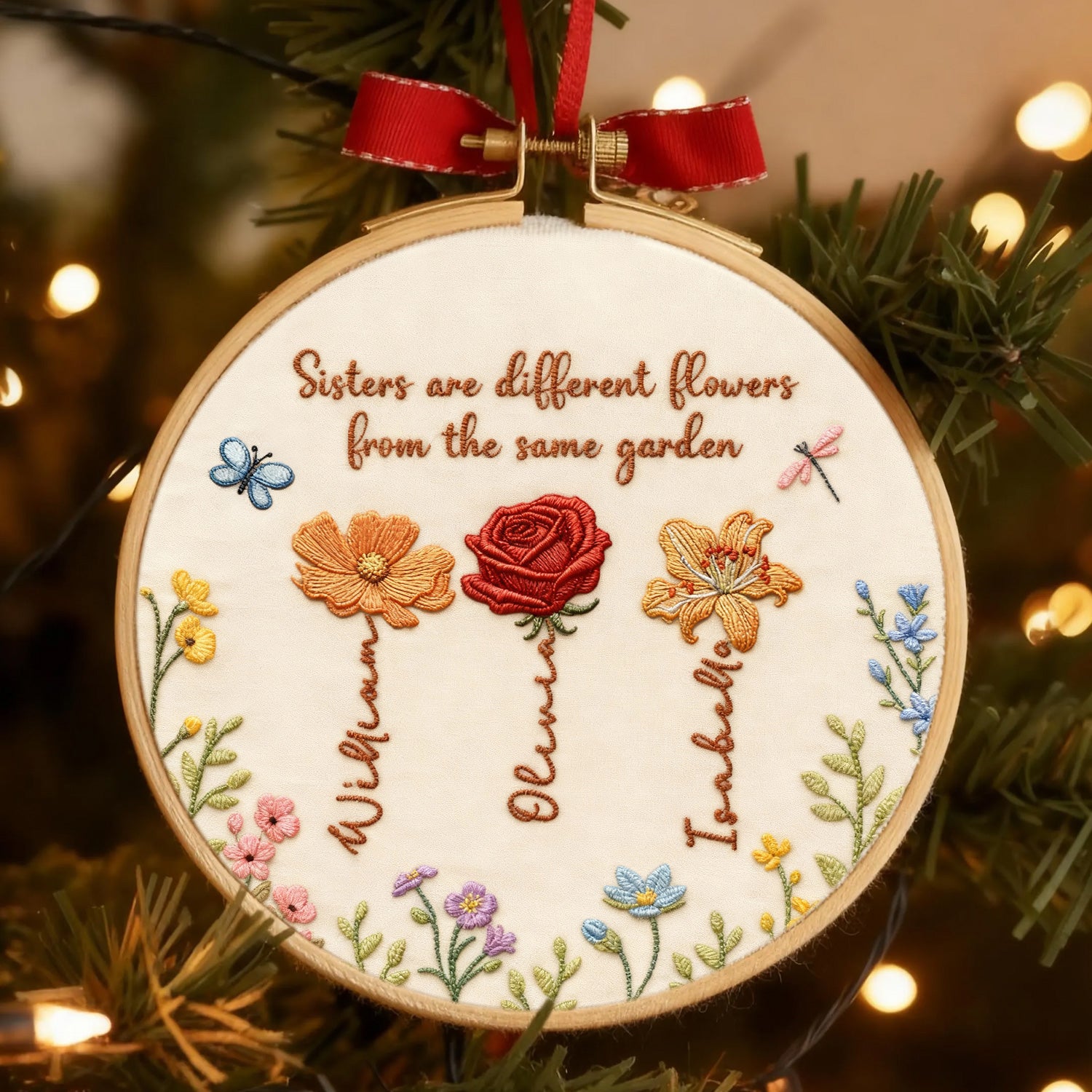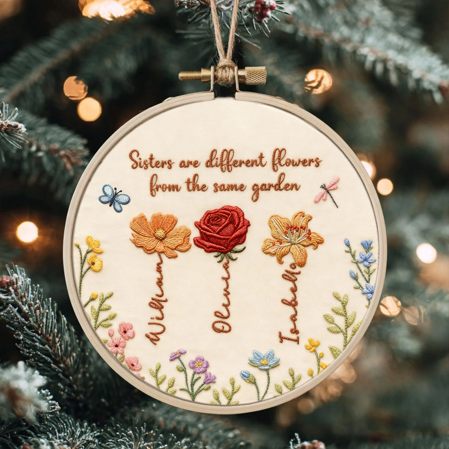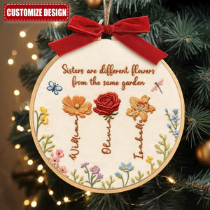 Sisters Are Different Flowers Embroidery Hoop Ornament, Custom Birth Flower Month Ornament, Christmas Sister Gifts