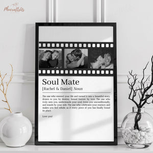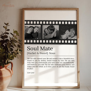 Celebrate your unique love story with our Personalized Soul Mate Definition Print, the perfect Valentine's Day gift for him. This couple photo poster wall art beautifully encapsulates your relationship, making it a heartfelt couple definition gift that you both will cherish. Customize it to reflect your bond and make this Valentine's Day unforgettable!