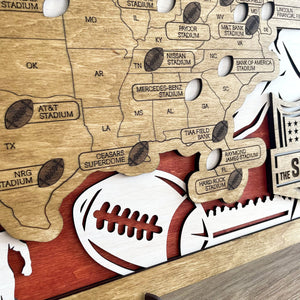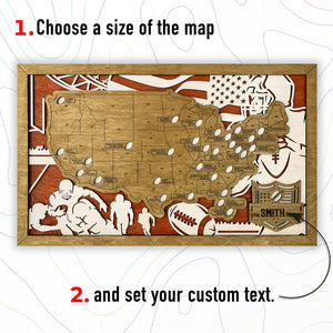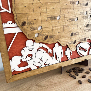 Custom Football League Stadium Map With Pins, National Football Stadium US Wooden Map Tracker