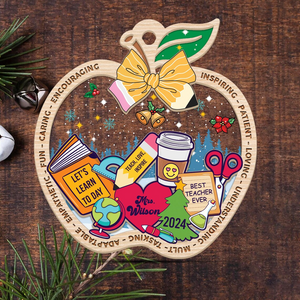 Teacher Appreciation Gifts – Personalized 2-Layer Wooden Teacher Ornament, Classroom Decor