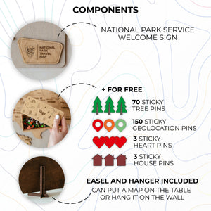 Personalized USA National Park Service Push Pin Map, National Parks Road Trip Wooden Map Tracker