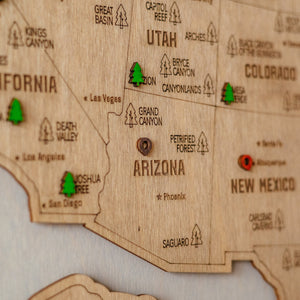Explore your love for travel and nature with our Wooden USA National Park Map. Display it proudly in your home and watch your adventures come to life. Begin your journey today!