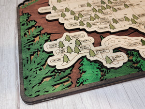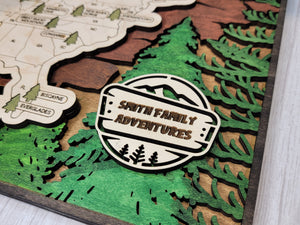 With our custom engraved badge, your wood map becomes a one-of-a-kind storyteller - marking your family name and the beginning of countless outdoor journeys through America's most beautiful parks.