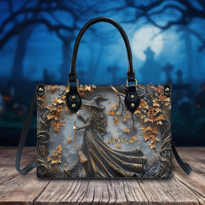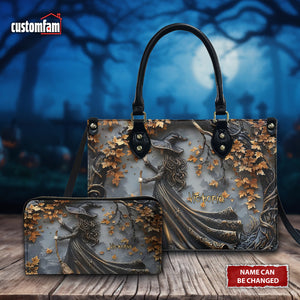 Personalized Witch Leather Handbag, Halloween Purse, Witch Gift