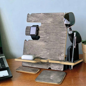Wood Docking Station, Home Decor, Desk Accessories for Men, Father's Day Gift, Gift for Dad, Husband or Him