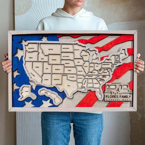 Personalized Wood US Travel Map, Lake Travel Map Tracker, Road Trip Tracker, Gift for Travelers
