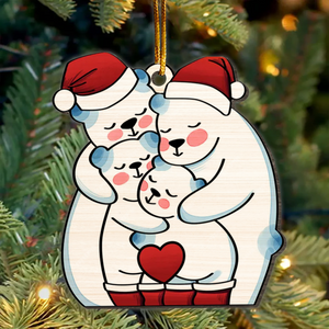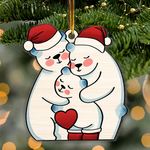 Personalized Wooden Bear Family Christmas Ornament, Gift For Family