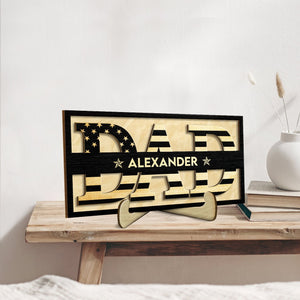 Personalized Wooden Plaque With Stand, Custom Kids Name Gift For Father, Father’s Day Gift, Gifts For Dad