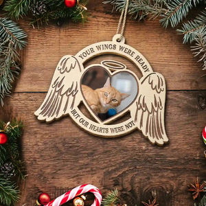 Celebrate the life and love of your cherished pet with our Personalized "Your Wings Were Ready" Wooden Ornament. This custom photo ornament serves as a heartfelt pet memorial gift, honoring the bond you shared with your furry companion. Crafted from premium quality wood, it is both durable and timeless. Personalize this ornament with a photo of your pet and a special message to create a meaningful tribute that will forever remind you of the joy they brought to your life. Whether it’s hanging on your Christmas tree or displayed in a favorite spot, this ornament will keep their memory close to your heart.