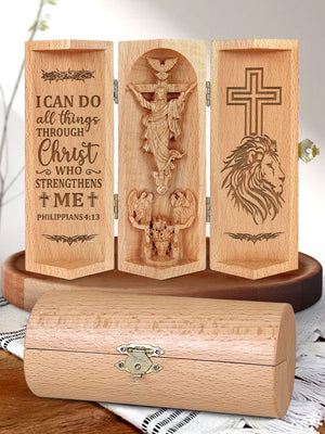 Philippians 4:13, Openable Wooden Cylinder Sculpture of Jesus Christ, Christian Gifts