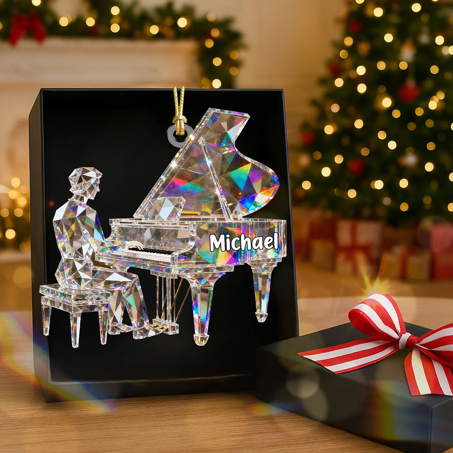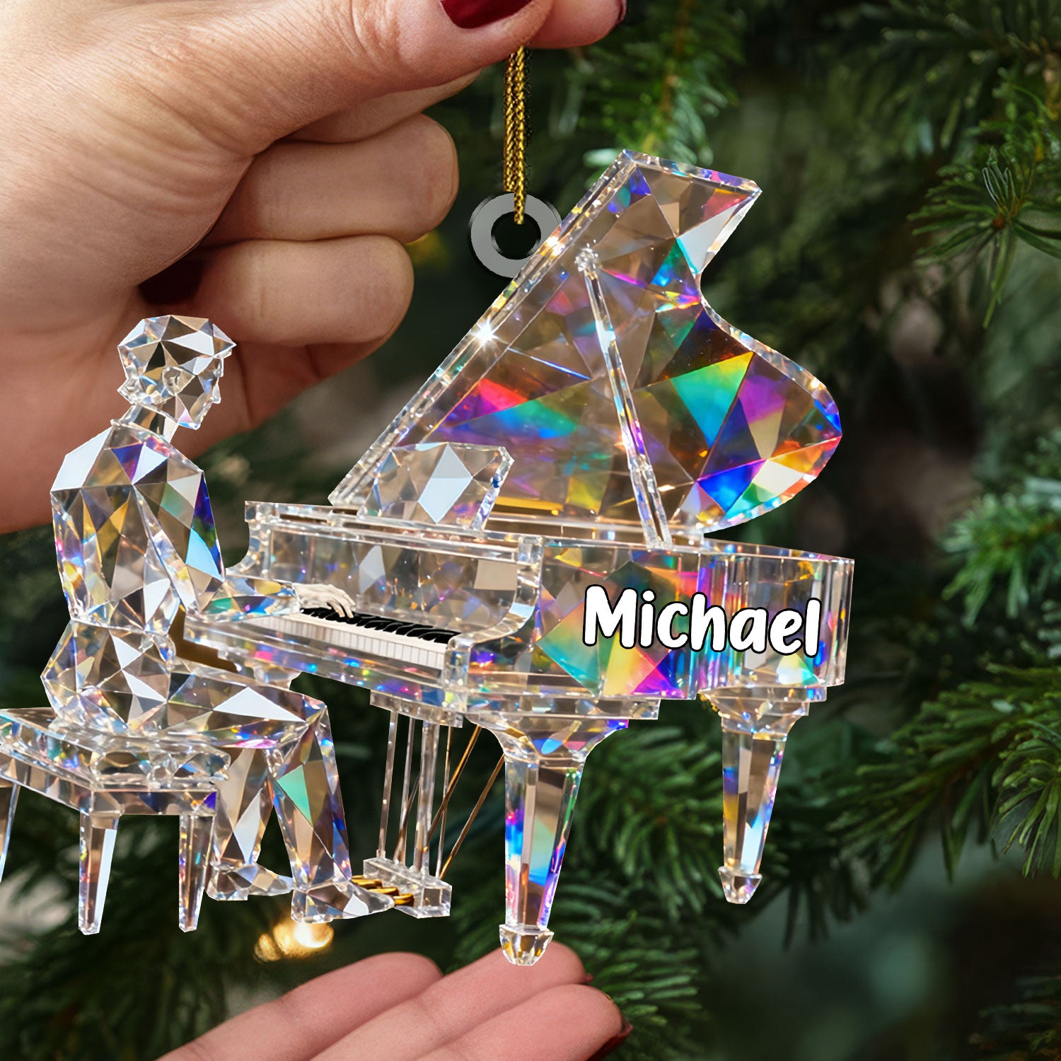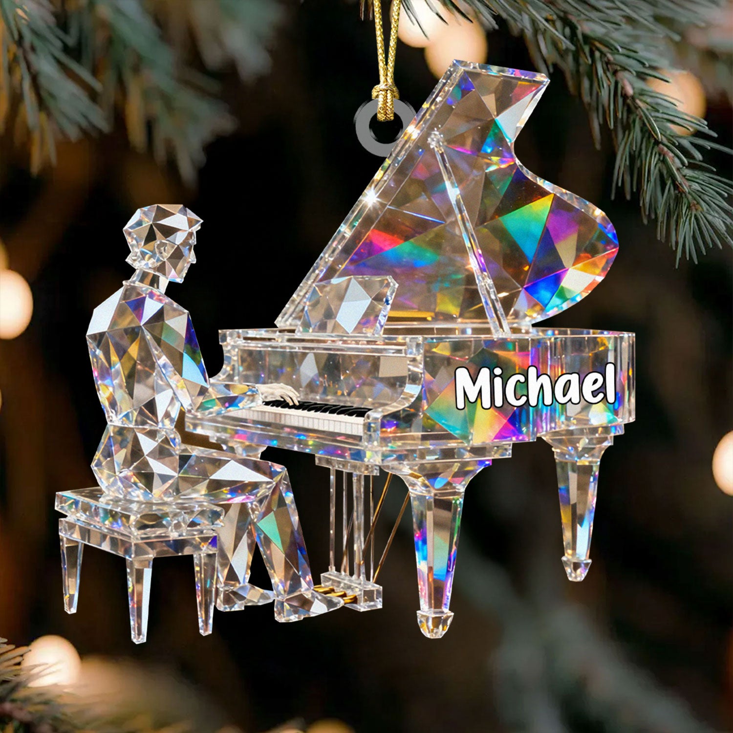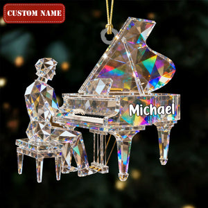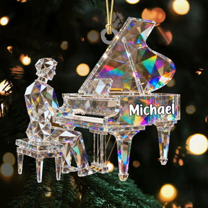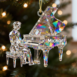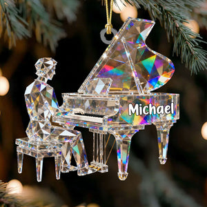 Pianist Custom Name Stained Glass Effect Acrylic Christmas Ornament, Pianist Gift, Music Ornament