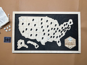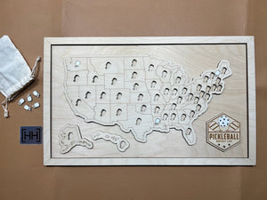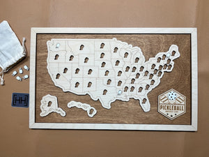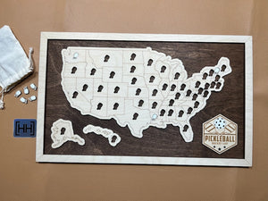 Pickleball Bucket List With Pins, Pickleball Wood Map Tracker, Gifts For Pickleball Players