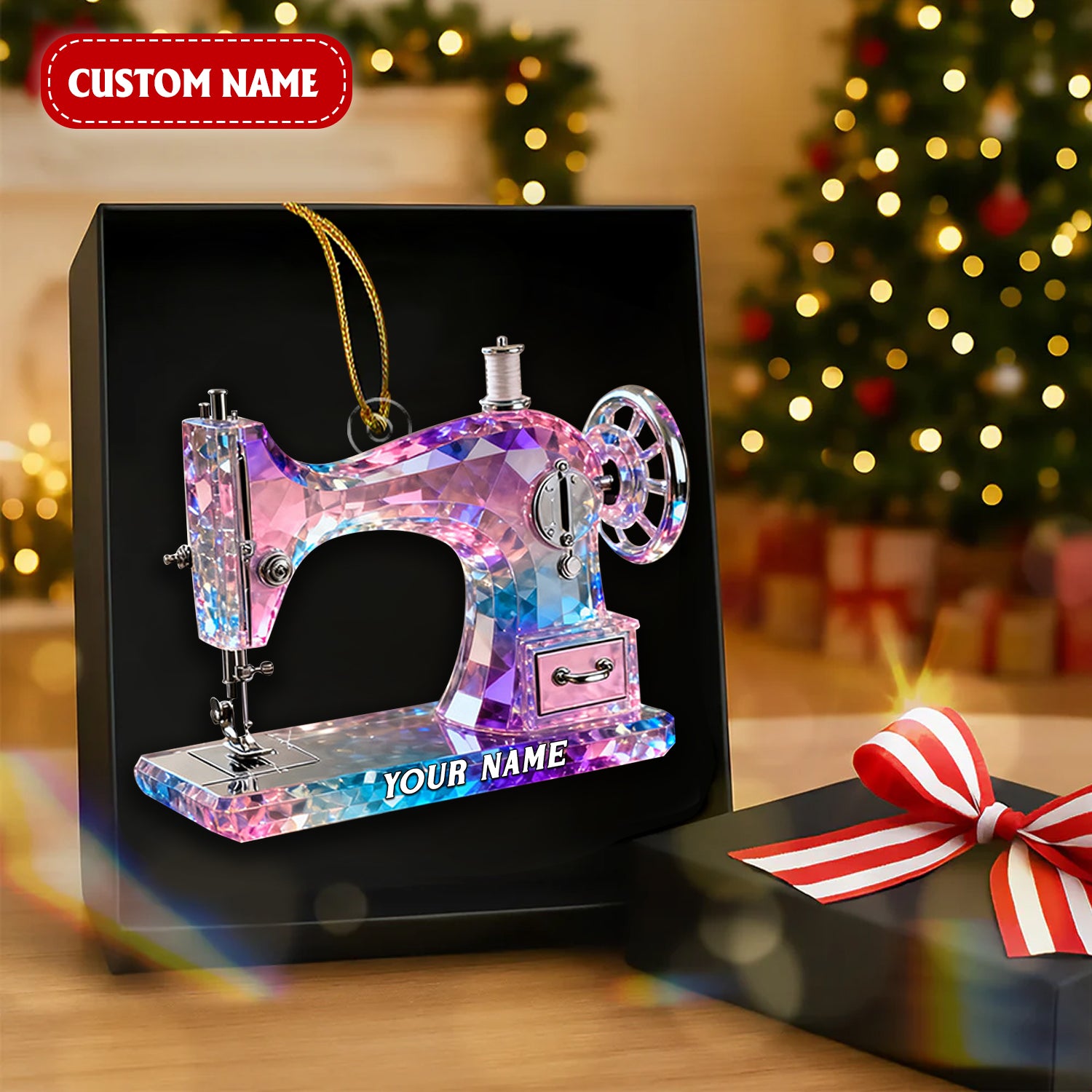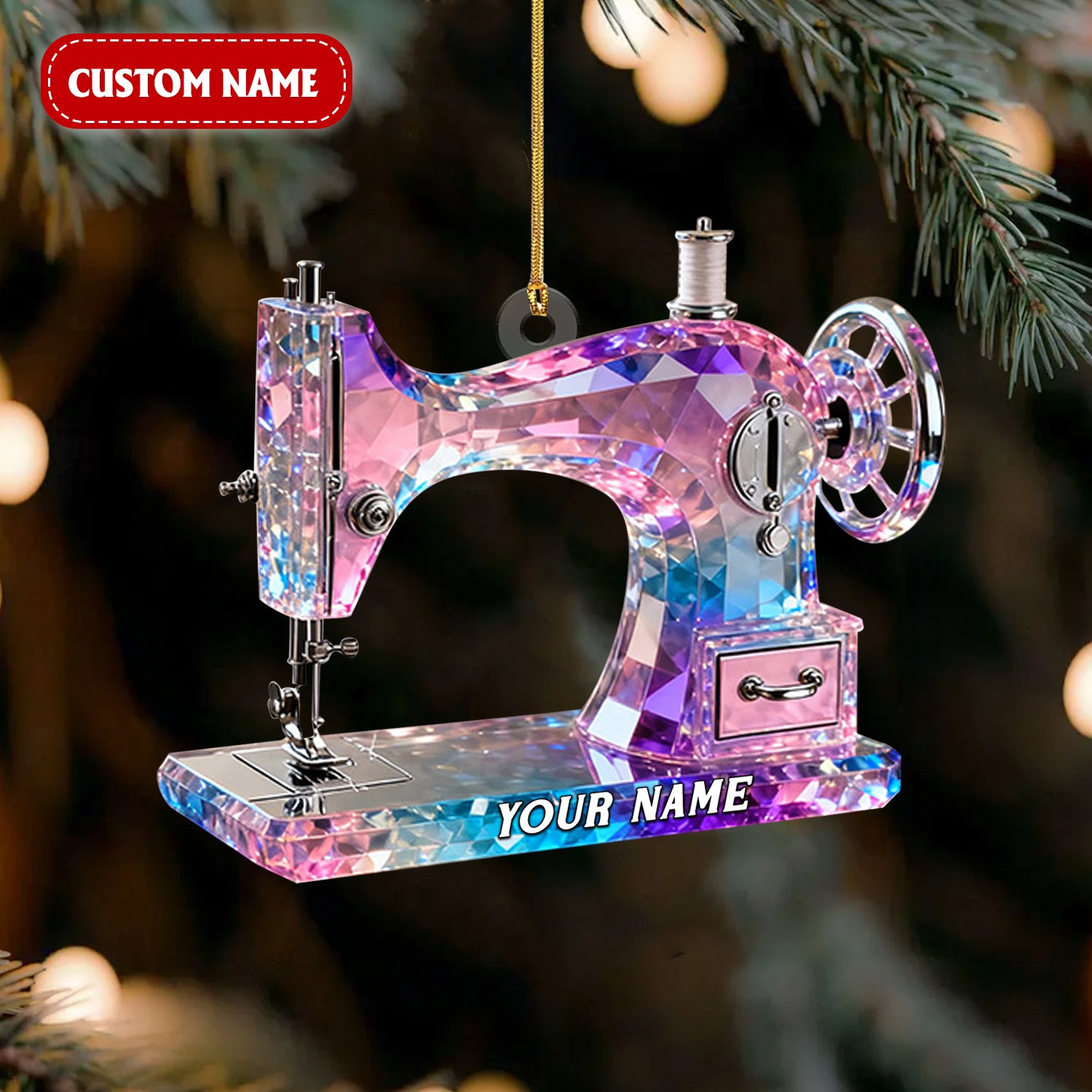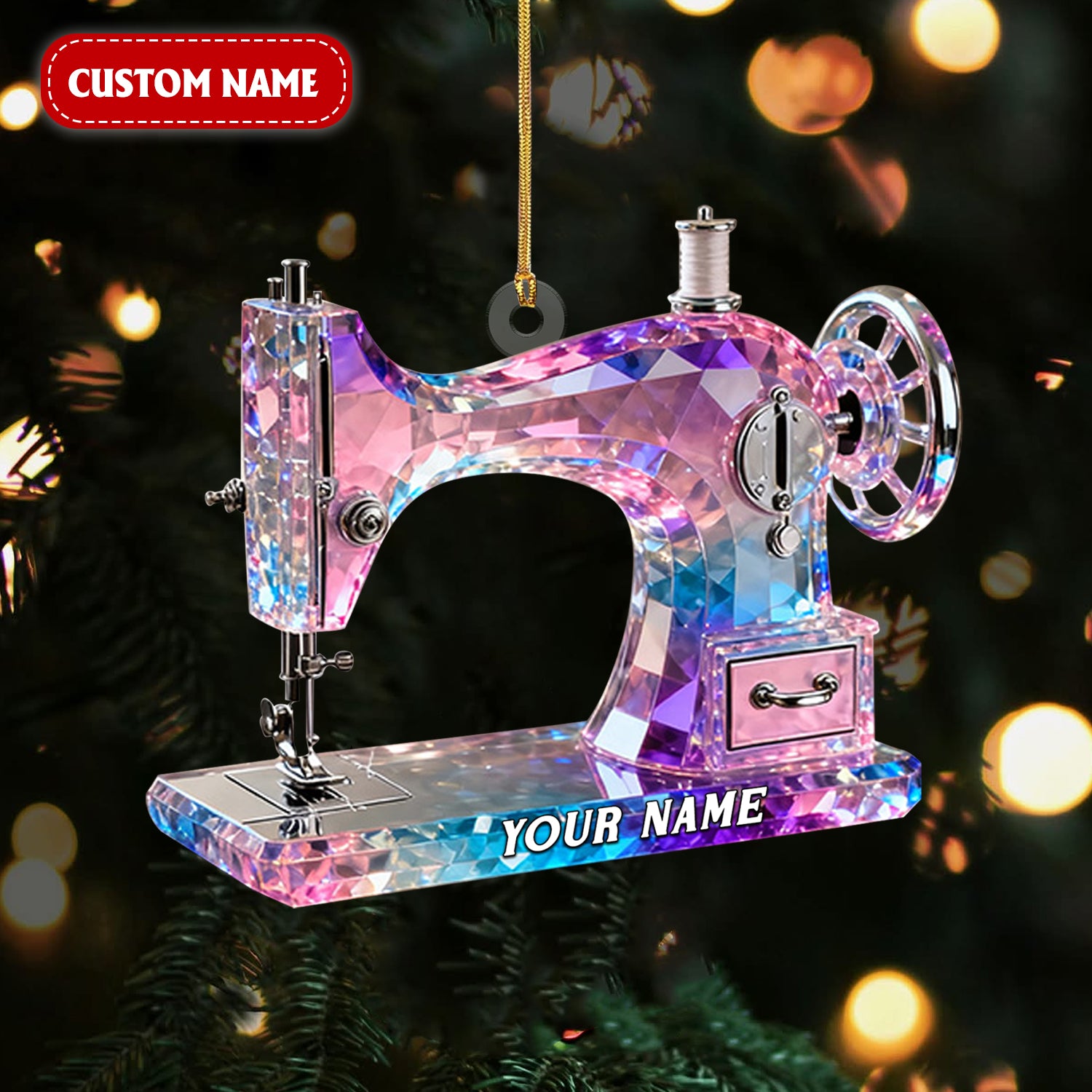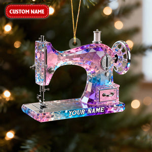 Pink And Purple Sewing Machine Custom Name Stained Glass Effect Acrylic Ornament, Gift For A Tailor