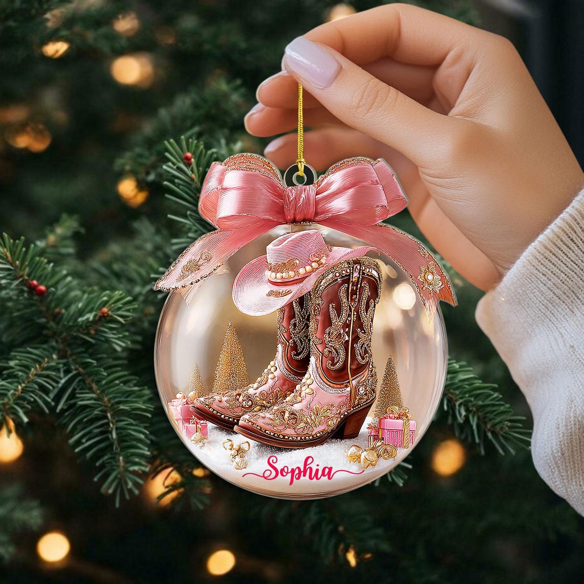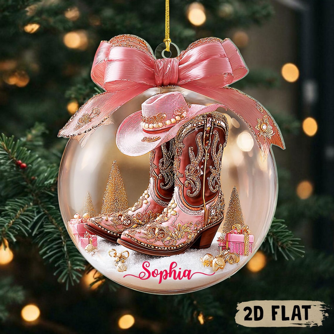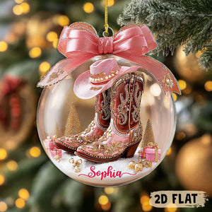 Pink Cowgirl Boot 2D Flat Custom Acrylic Ornaments, Western Ornament, Snow Ornament Xmas Decor