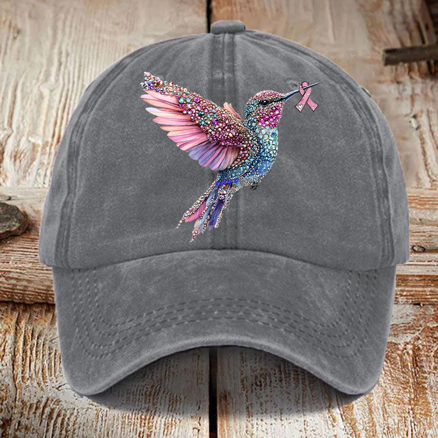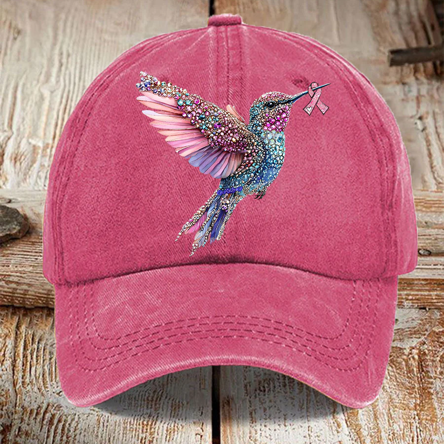 Pink Ribbon Breast Cancer Humingbird Hat, Breast Cancer Awareness Cap, Vintage Baseball Cap, Printed Cap