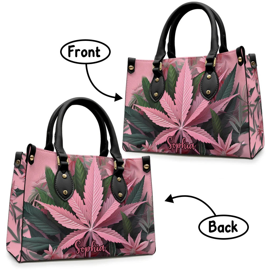 Pink Stoner Chick - Personalized Weed Leather Handbag - Boho Handbag - Leather Shoulder Bag