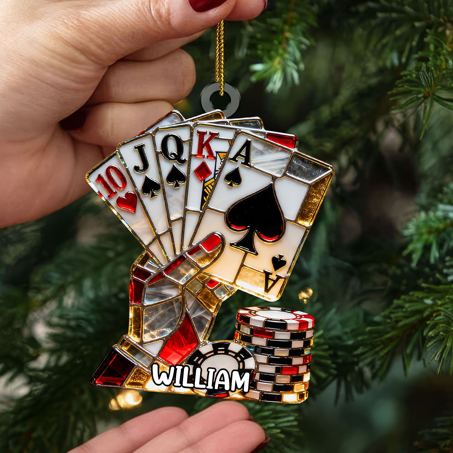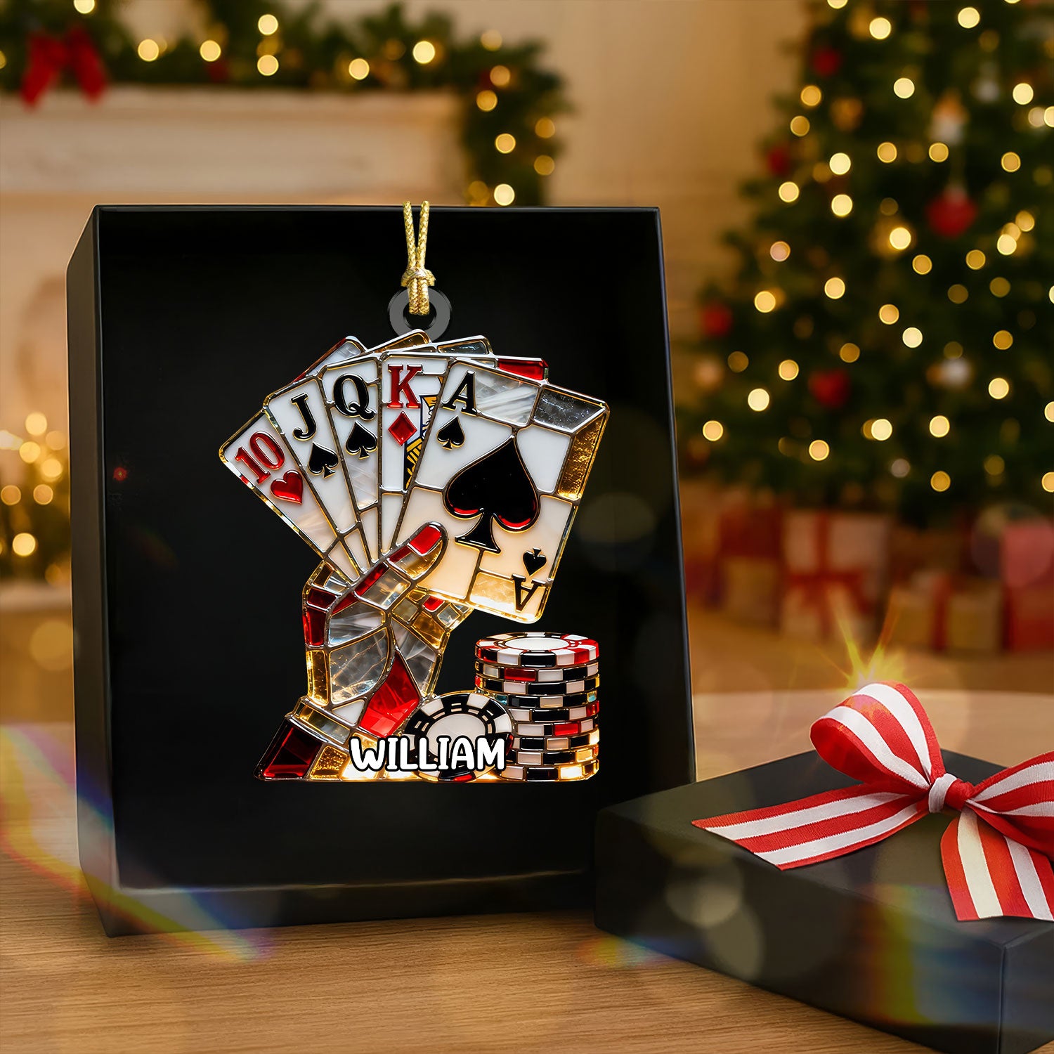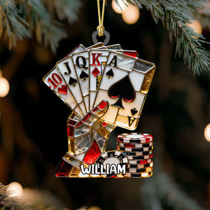 Poker Player Stained Glass Crystal Effect Acrylic Ornament, Poker Elements Unique Christmas Ornament