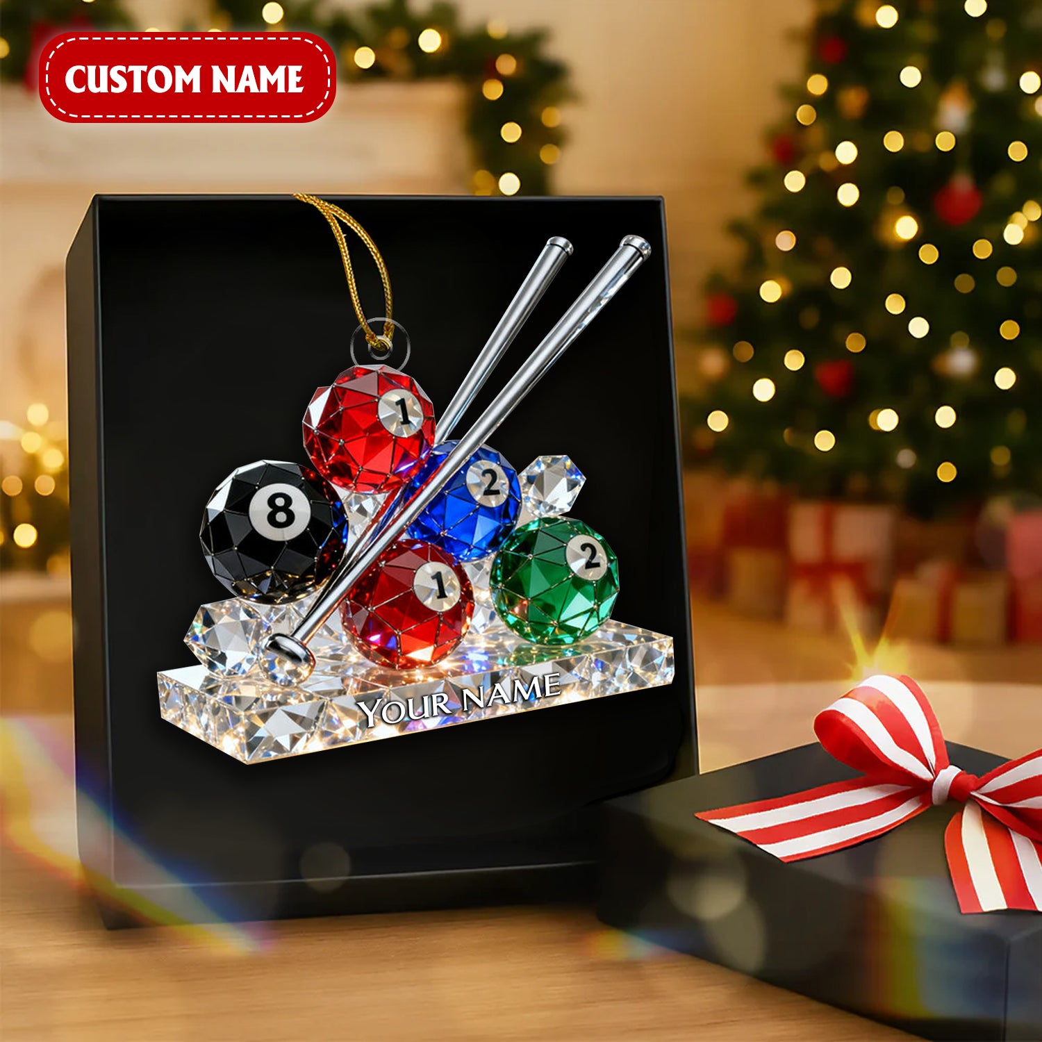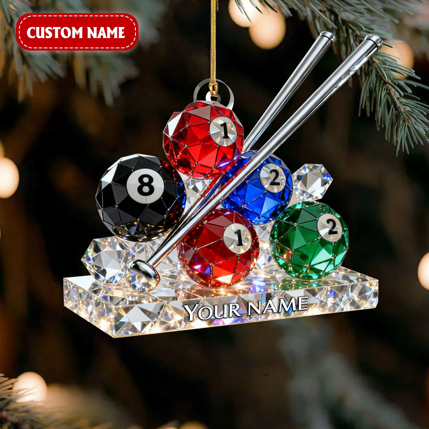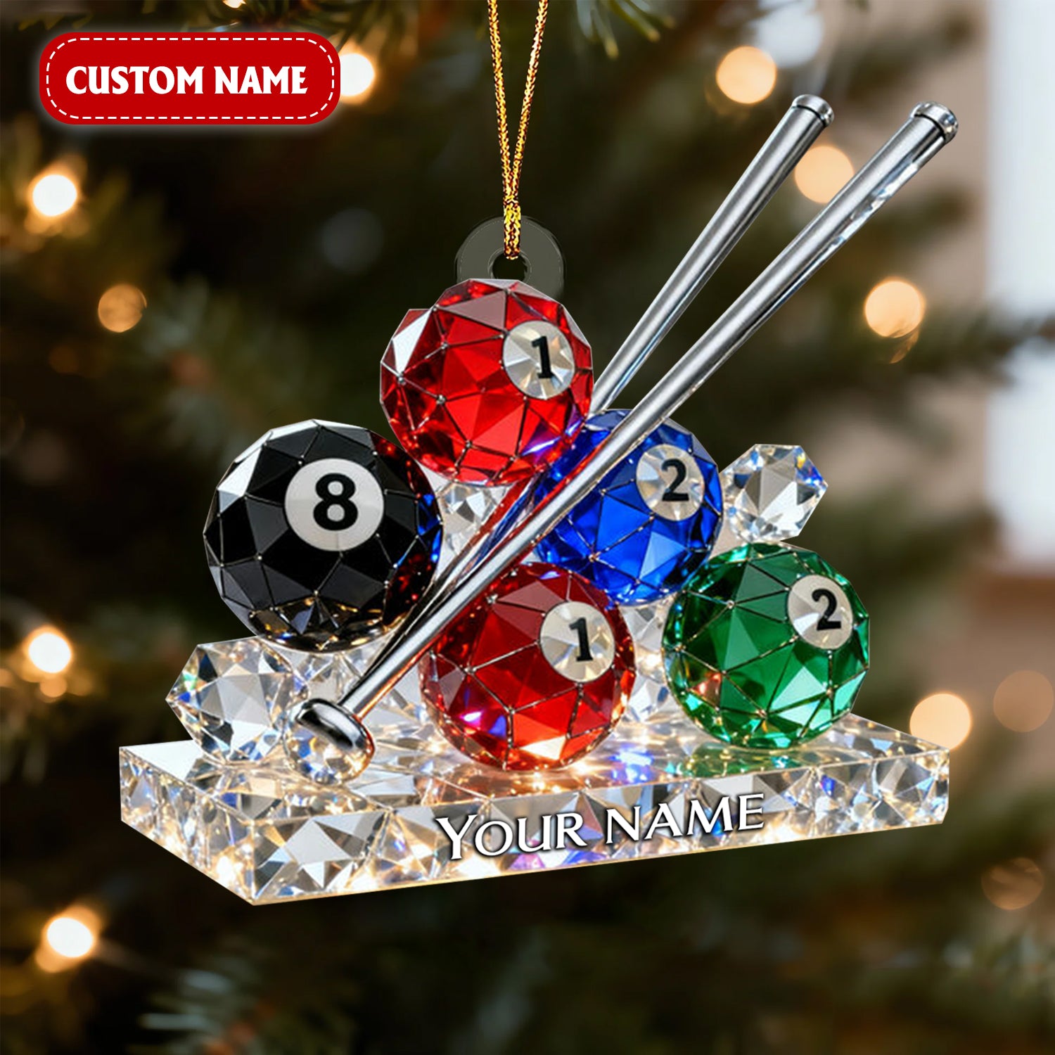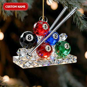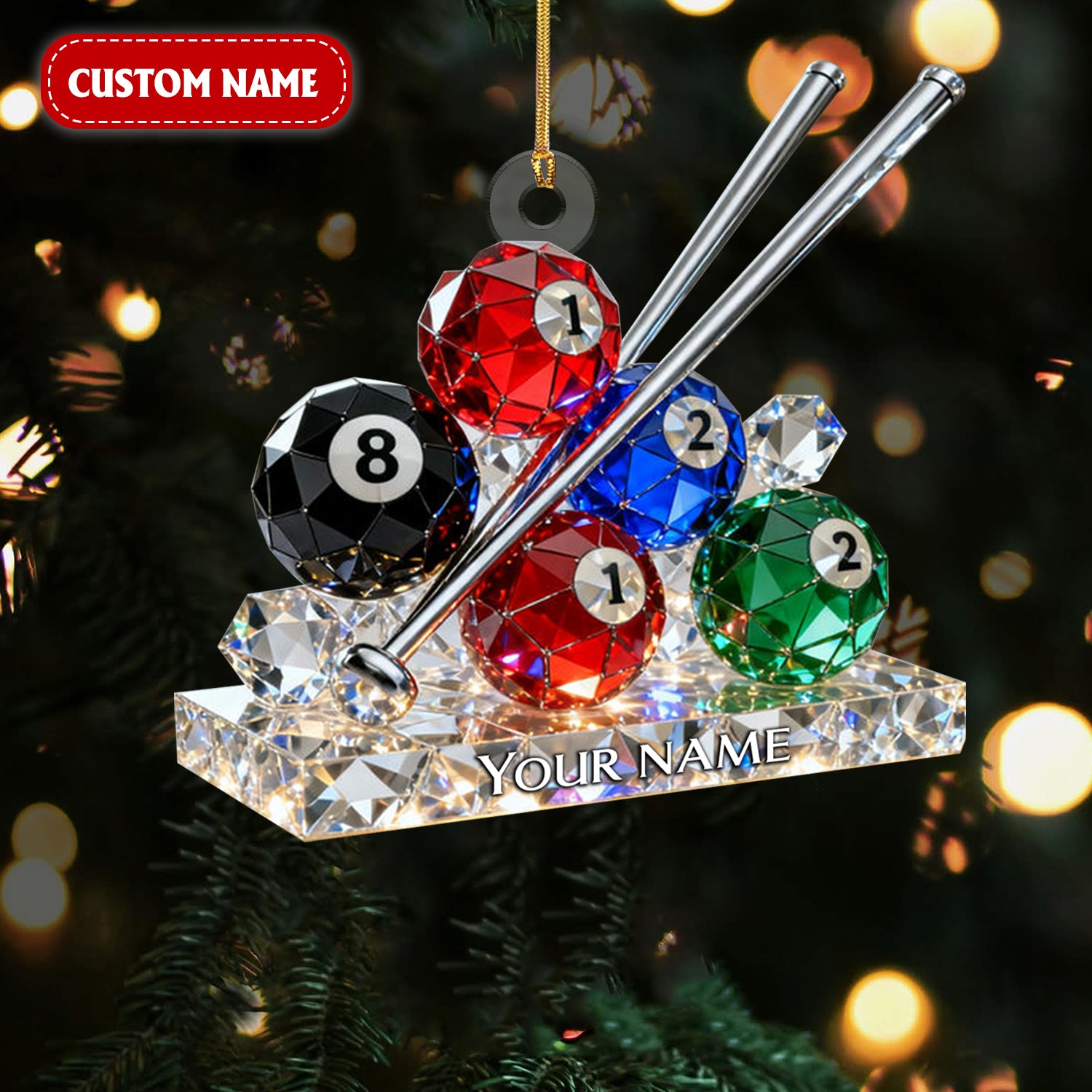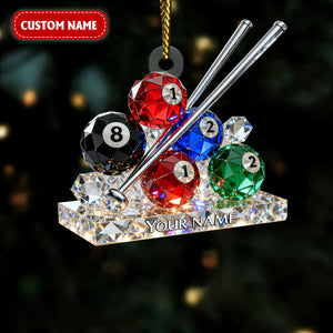 Pool Table Balls Custom Name Stained Glass Effect Acrylic Christmas Ornament, Xmas Decor, Gifts For Pool Players