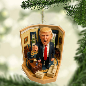 President Trump Command Pose Oval Office 2D Acrylic Ornament, Funny Keychain, Funny Christmas Ornament