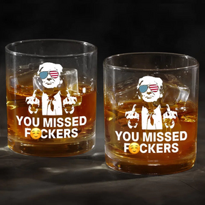 President Trump You Missed Whiskey Glass, Trump2024 Funny Glassware
