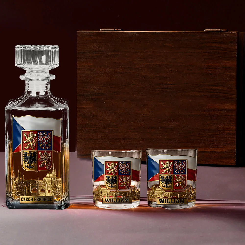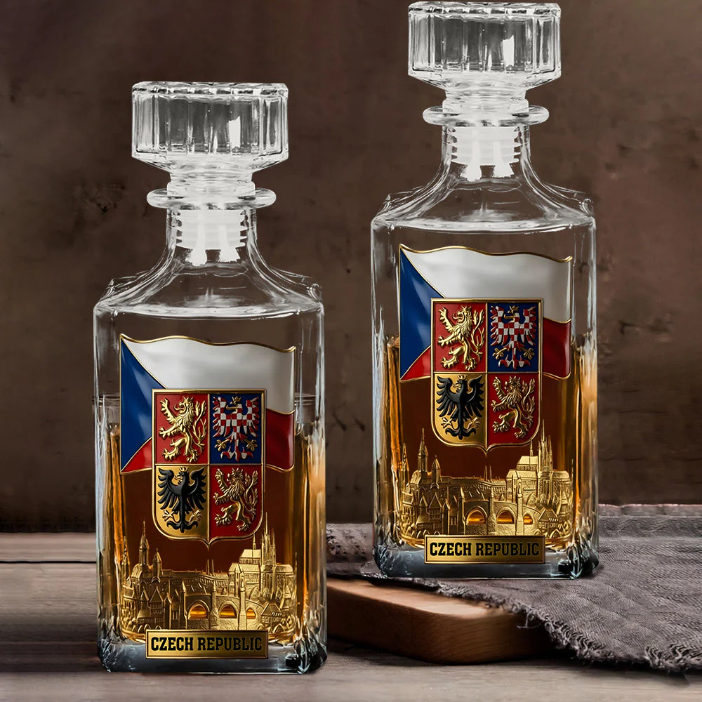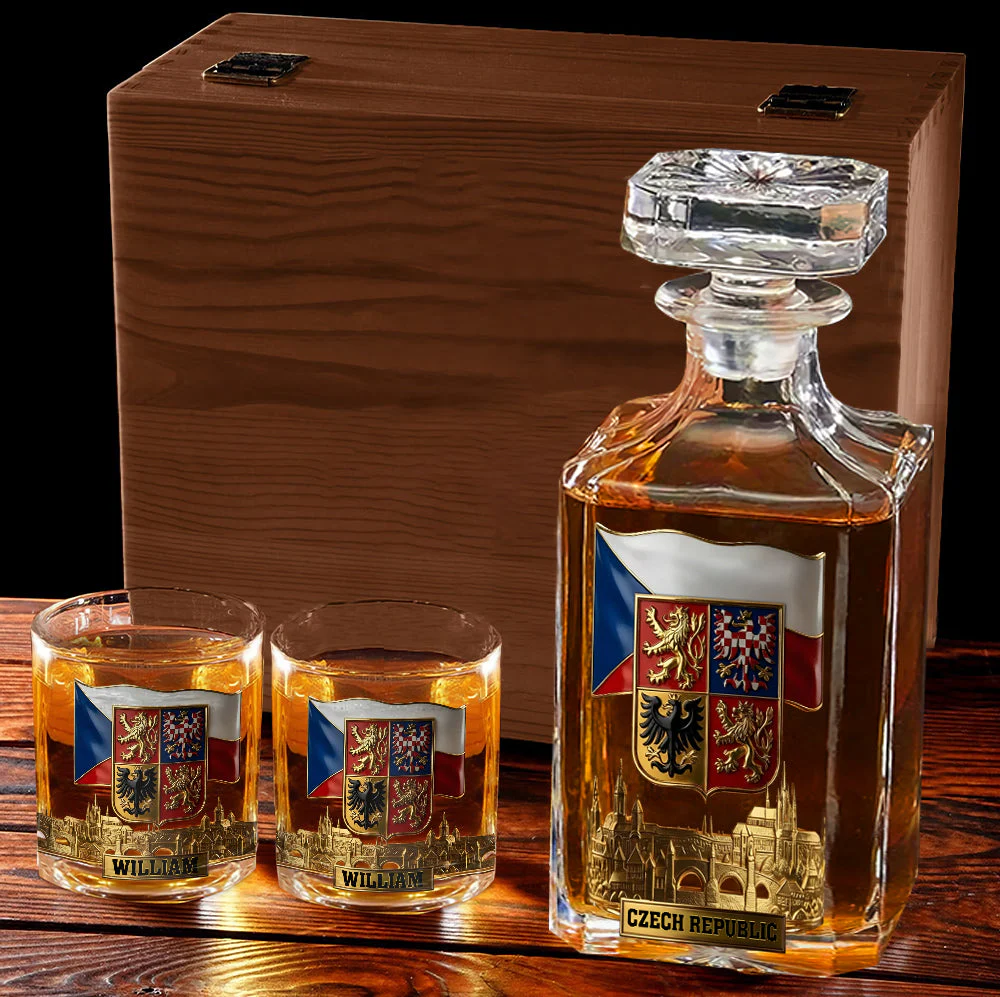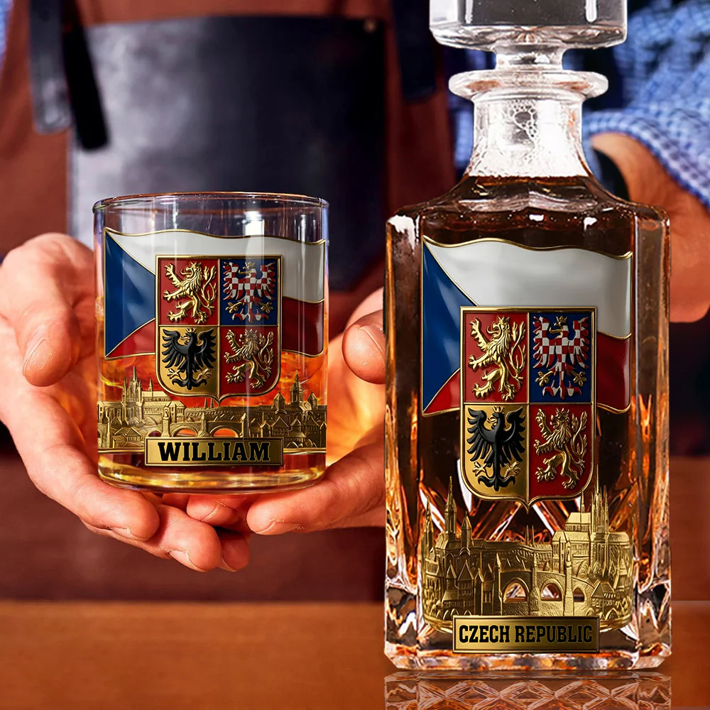 Proud Czech Republic Whiskey Decanter Set, Personalized Whiskey Glasses, Luxury Whiskey Glass, Man Cave Gift