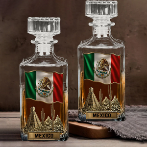 Proud Mexican Personalized Expats Whiskey Decanter Set, Luxury Whiskey Glass, Whiskey Decanter Set