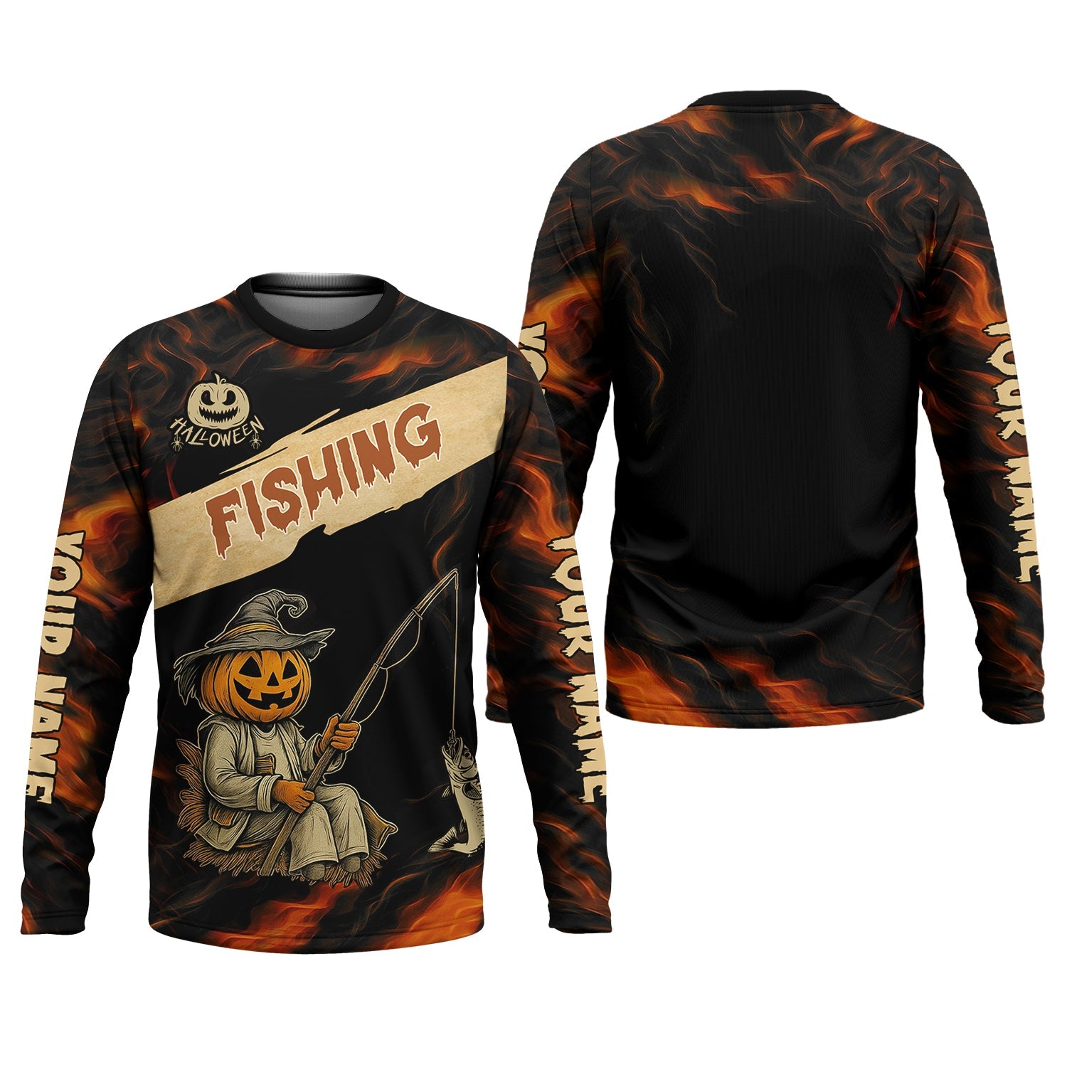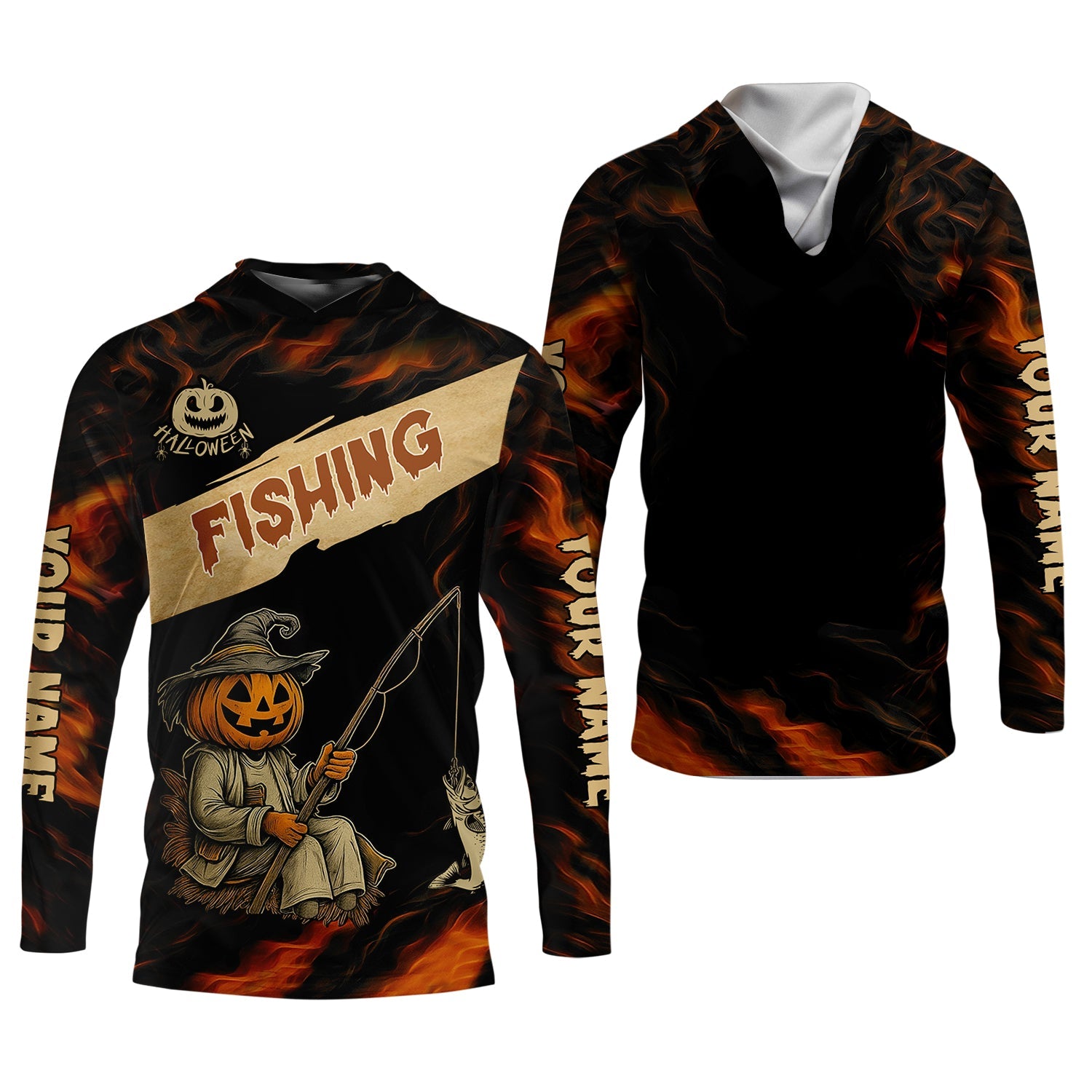 Pumpkin Fishing SPF Shirt, Halloween Fishing Men Jersey, Funny Fishing Shirt, Presents For Fishermen