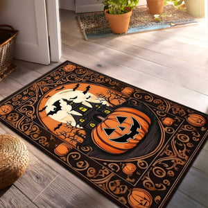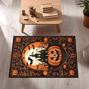 Ghost Bats Pumpkin Rug, Decorative Rug, Halloween Rug, Living Room Rug, Halloween Gifts