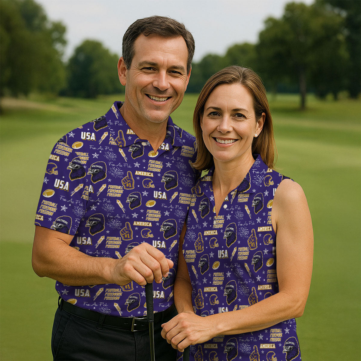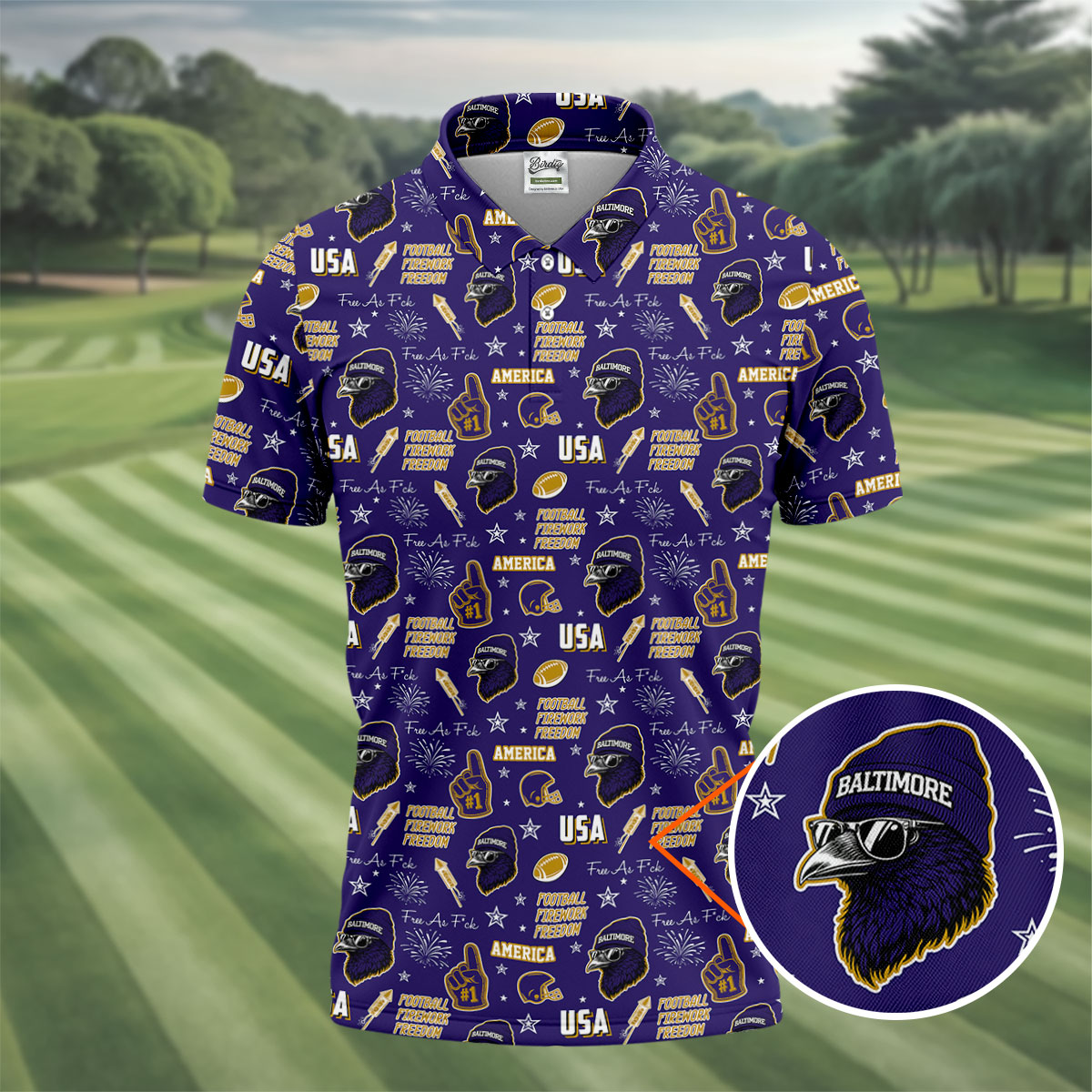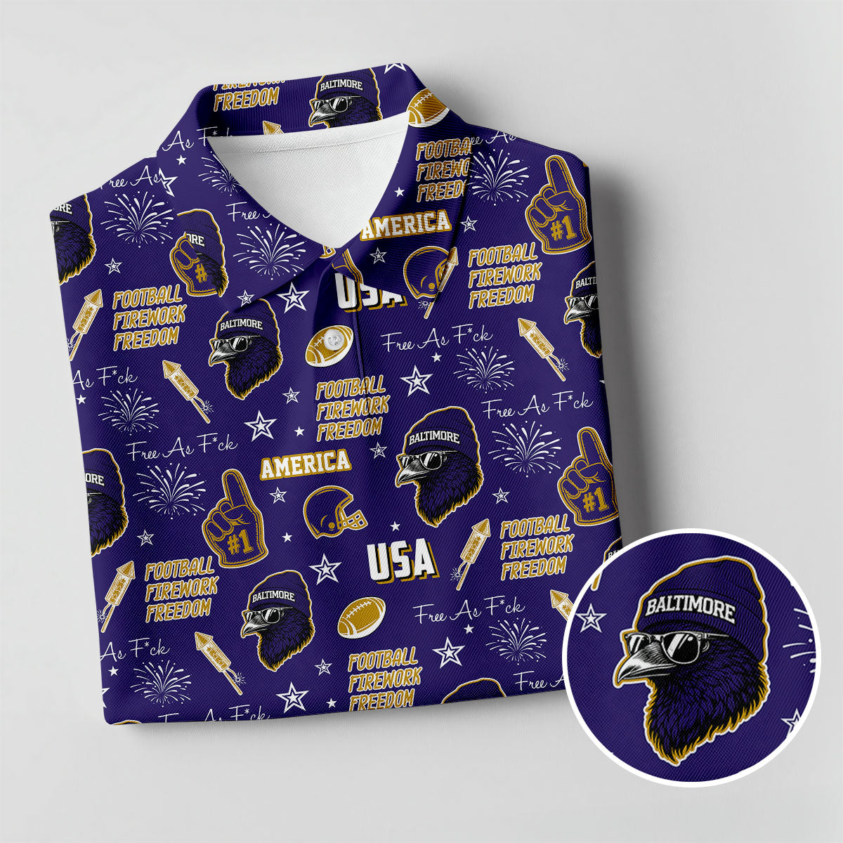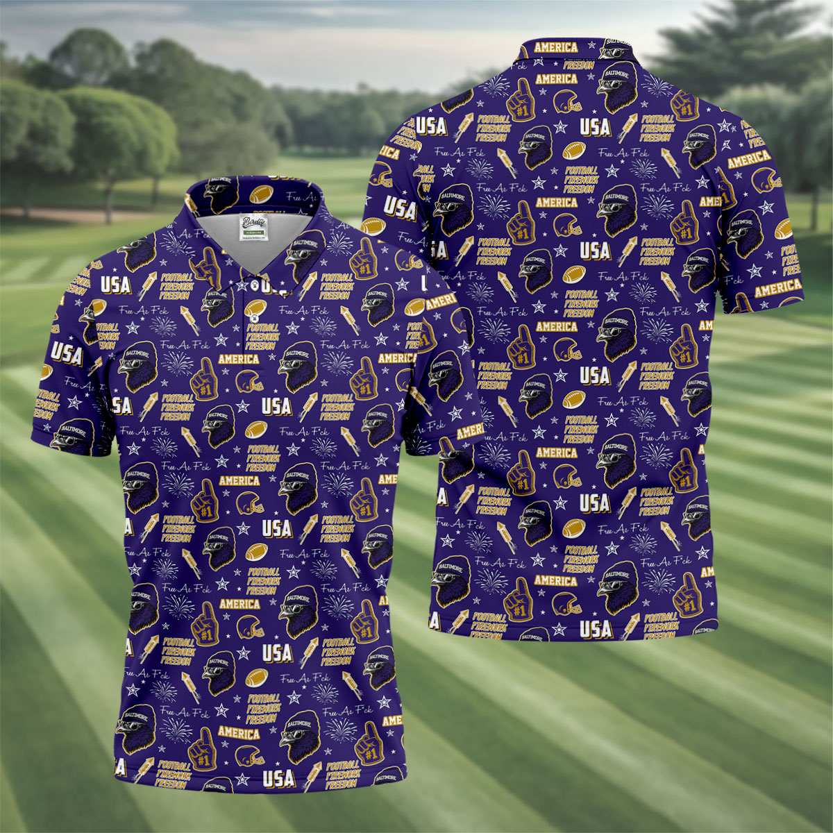 Purple Raven Metallic Gold With Purple Sport Polo, American Football League Gift Ideas For Football Fans