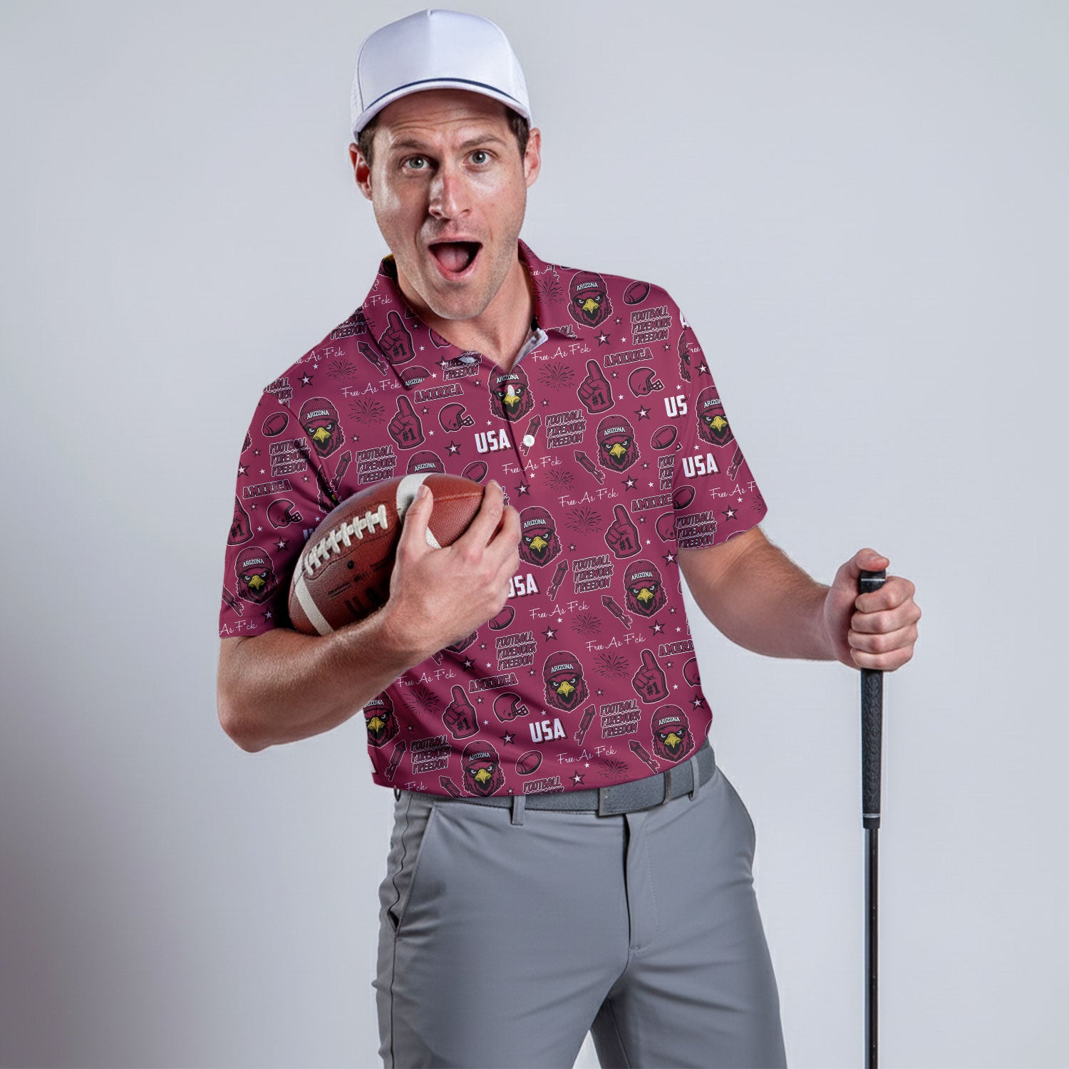 Red Cardinal Black White Yellow Sport Polo, American Football League Gift Ideas For Football Fans