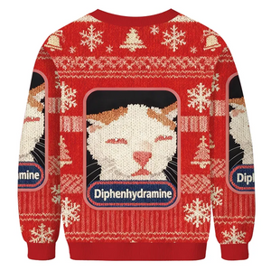 Red Diphenhydramine Drowsy Cat Meme Ugly Sweater, Gift For Cat Lovers, Christmas Ugly Sweatshirt