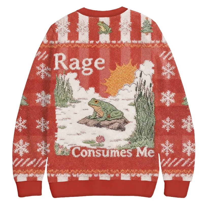 Red Rage Consumes Me Frog Pond Vintage Christmas Sweater, Ugly Xmas Sweater, Christmas Ugly Sweatshirt