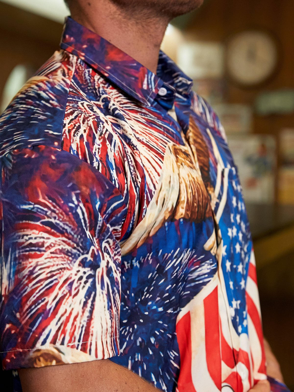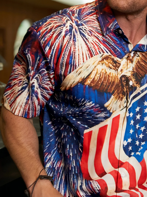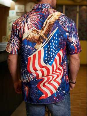 Red White Blue American Eagle USA Patriotic Hawaiian Golf Shirt, 250th Anniversary Tropical Vibe Men's Golf Shirt
