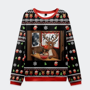 Reindeer Eating Ramen Funny Ugly Sweater, Ugly Xmas Sweater, Christmas Ugly Sweatshirt