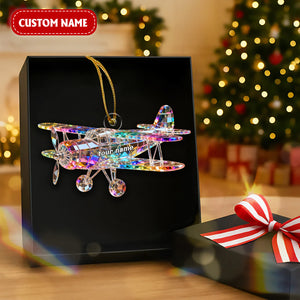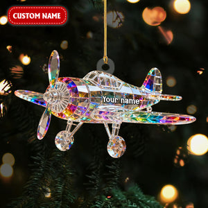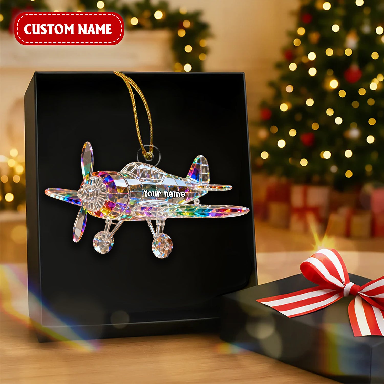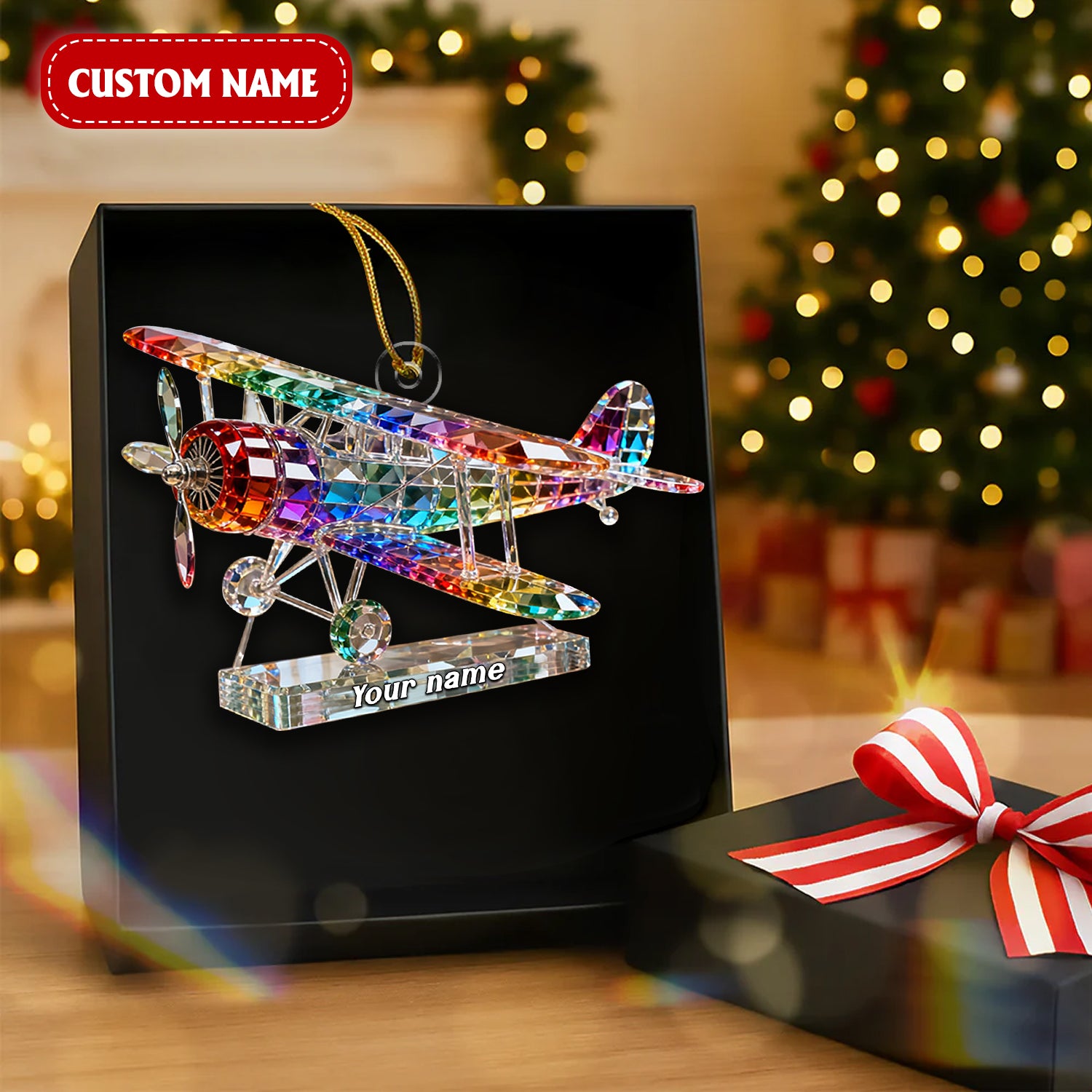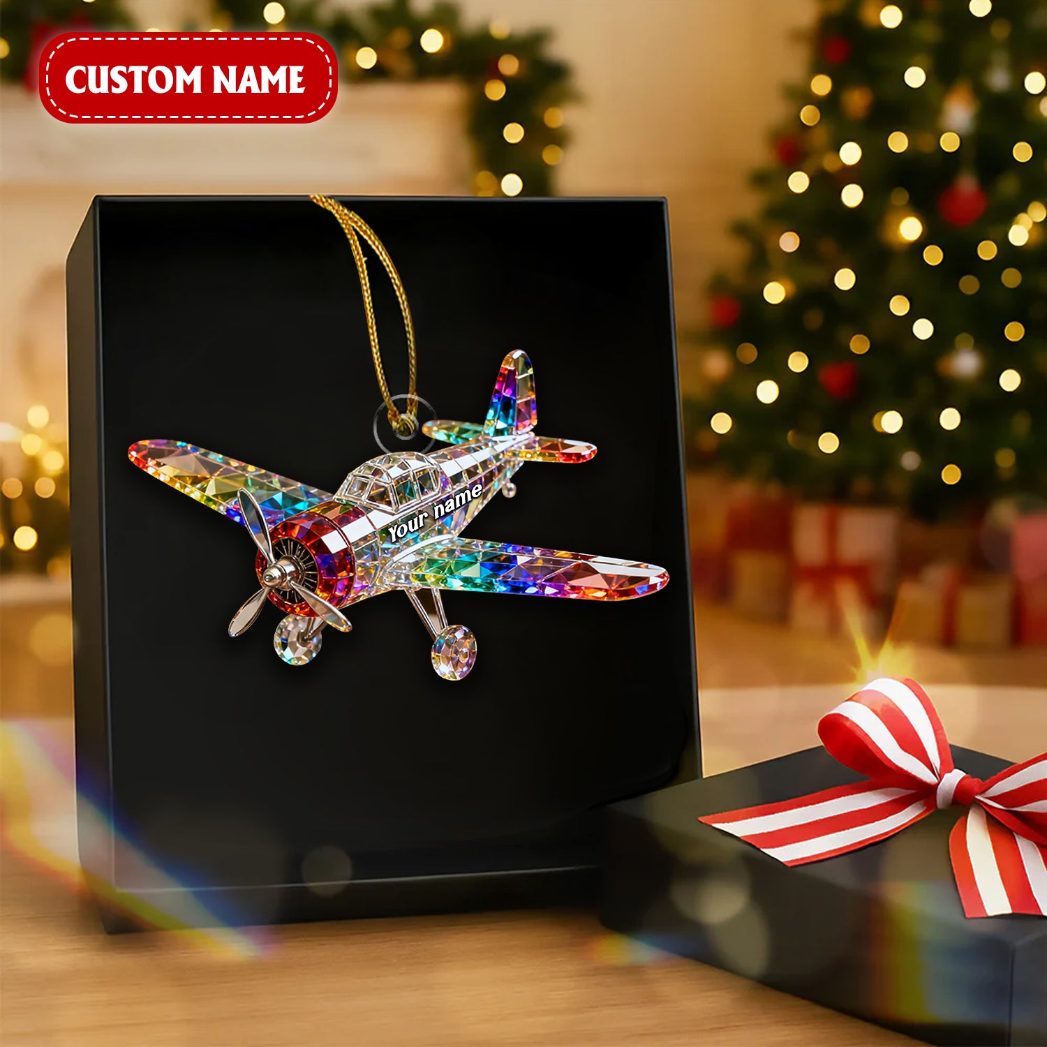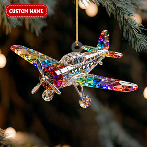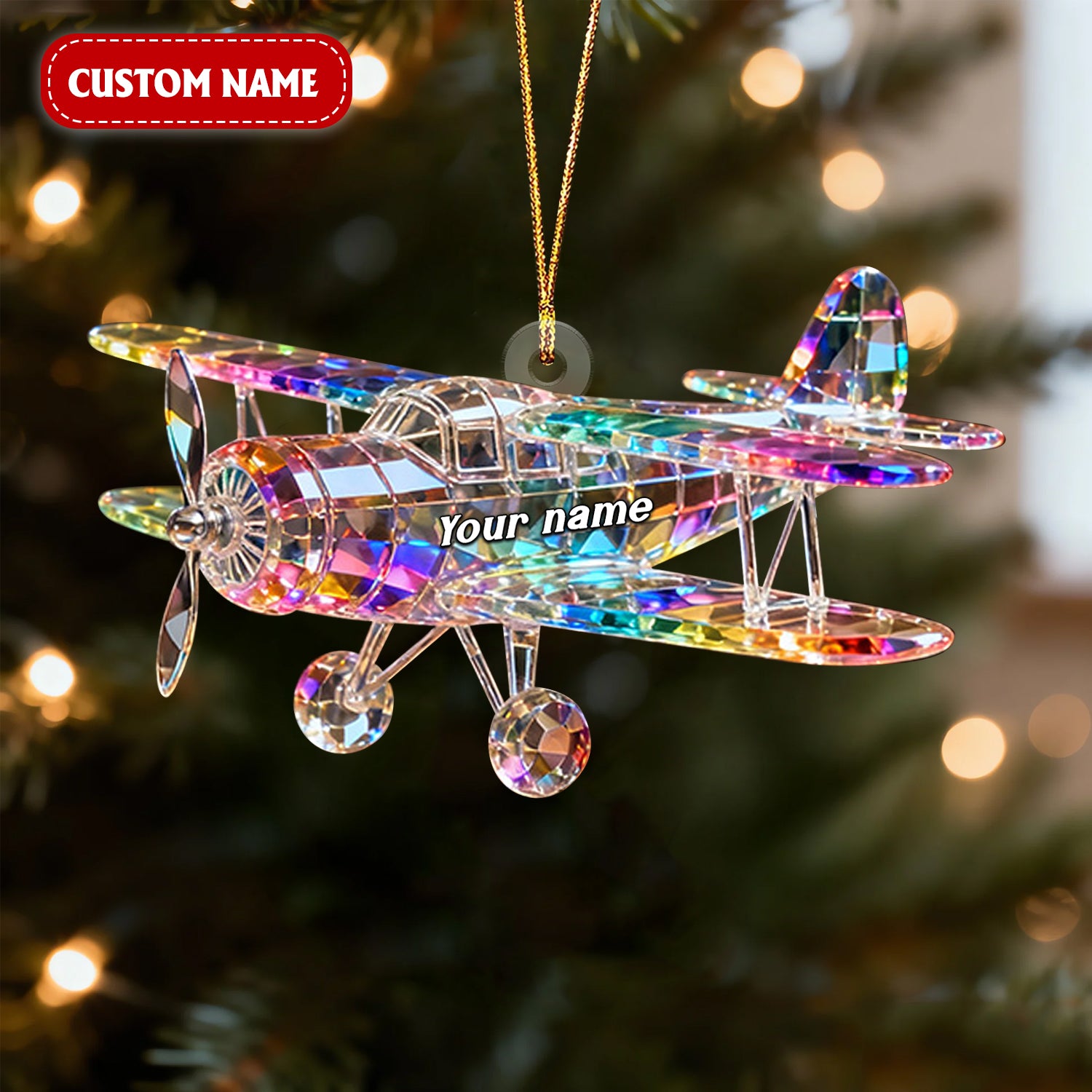 Retro Airplane Art Custom Name Stained Glass Effect Acrylic Christmas Ornament, Xmas Decor, Aviation Gifts