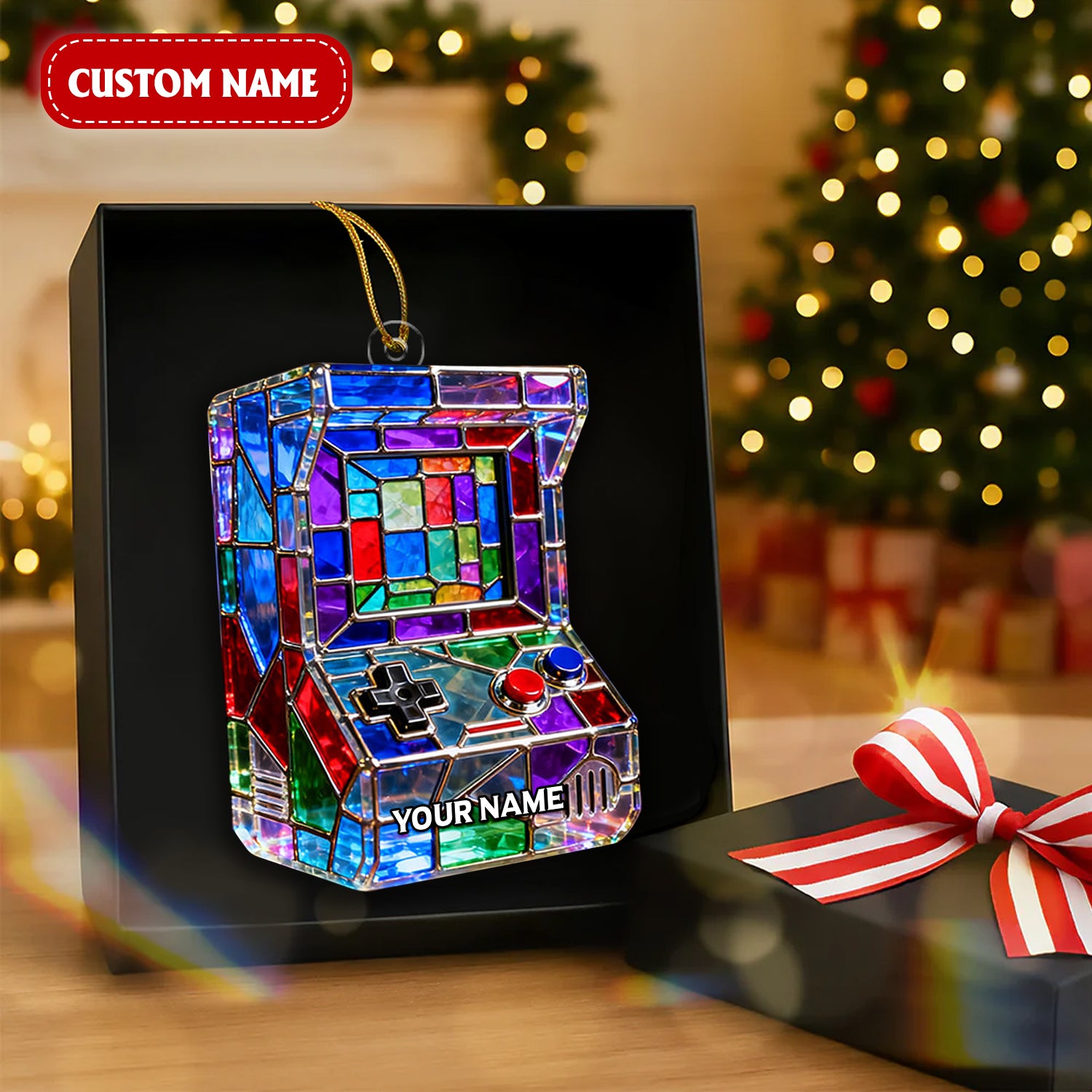Retro Arcade Machine Crystal Effect Acrylic Ornament, Video Game Ornament, Game Room Decor