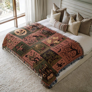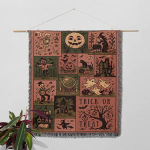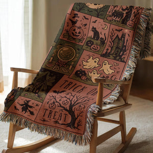Retro Halloween Blanket, Trick Or Treat Halloween Throw Blanket, Halloween Decor