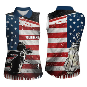 Custom Name American Flag Patriotic 4th Of July Women Polo Shirt, Golf Shirt For Women, Ladies Golf Polos