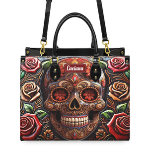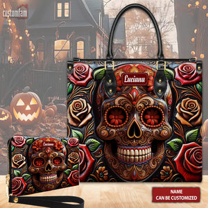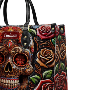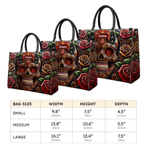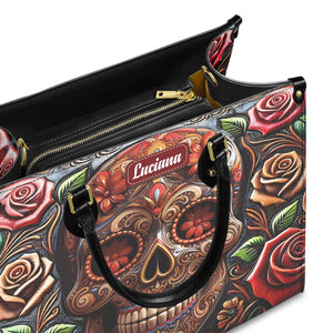 Roses And Skull Personalized Leather Handbag, Skull Purse, Handbag For Mom, Mother's Day Gift