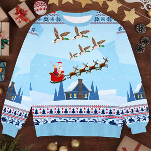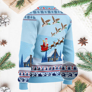 Santa Duck Hunting Funny Christmas Ugly Sweater, Ugly Christmas Sweater